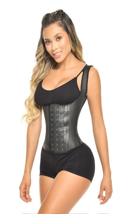 Materiales: Látex liviano, CALIBRE 900 con dos varillas en abdomen y dos en la espalda que mejoran postura, capa interna en algodón para contacto más suave con la piel. Abrochadura frontal con 4 niveles de ajuste, que permite ver tu progreso.
